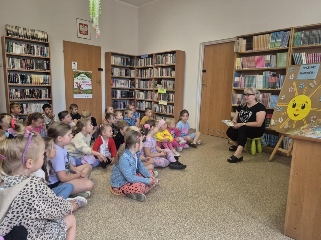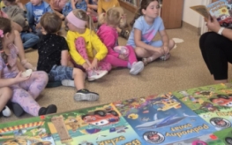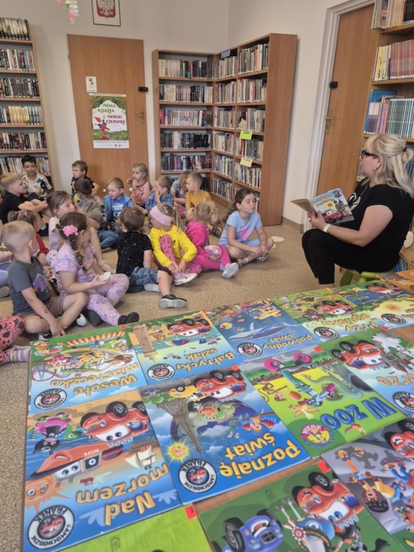 Podczas wizyty z uwagą wysłuchały opowiadania z serii „Samochodzik Franek” pt. „Poznaję Polskę”.