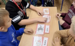 Pierwszym zadaniem była językowa zabawa polegająca na dopasowaniu ilustracji do wyrazów zapisanych gwarą wielkopolską. Niektóre słowa – takie jak „proszczok”, „kielce” czy „dyrdok” – wywoływały salwy śmiechu, inne budziły zdziwienie i ciekawość. Każde z nich było jednak pretekstem do rozmowy o tradycji, historii i codzienności dawnych mieszkańców regionu.