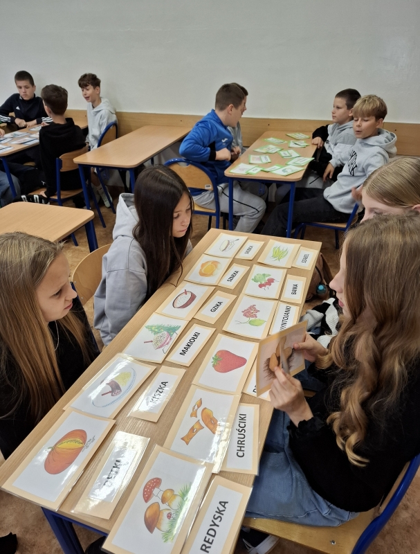 Kolejnym etapem warsztatów była krzyżówka oparta na hasłach z gwary wielkopolskiej. Uczniowie z dużym zaangażowaniem rozwiązywali kolejne zadania, a przy okazji poznawali nowe, charakterystyczne dla regionu wyrazy. Wspólna praca sprzyjała integracji i pokazała, że nauka języka może być nie tylko wartościowa, ale i pełna humoru.