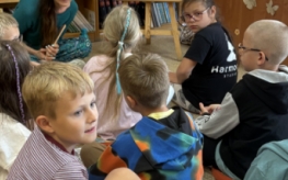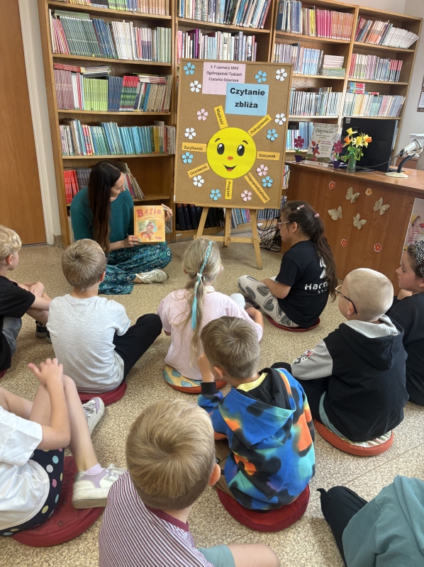 Pani Bożena przeczytała dzieciom książkę „Basia i urodziny w muzeum” autorstwa Zofii Staneckiej z ilustracjami Marii Oklejak. Lektura wprowadziła uczestników w świat muzealnych przygód, historii i ciekawostek, stając się doskonałym pretekstem do dalszych aktywności.