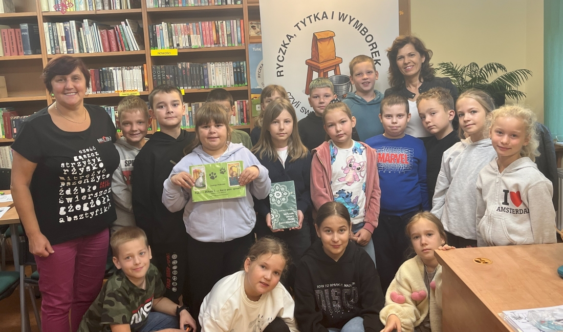 Na początek dzieci wysłuchały fragmentu książki J. Podeszwy „Pusia i Mikaduś, czyli kocie-psie sprawki”. Opowieść stała się pretekstem do rozmów o bohaterach, emocjach i… o tym, jak niektóre słowa brzmią w języku ogólnym, a jak w gwarze wielkopolskiej.