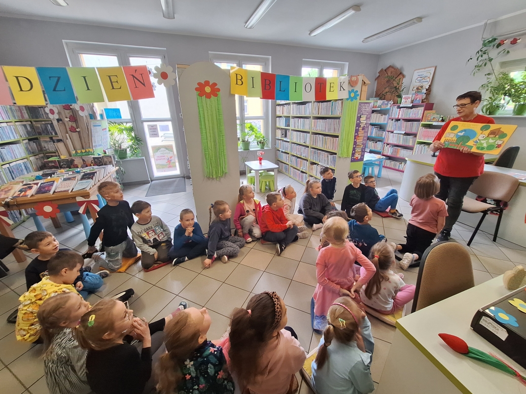 Bibliotekę odwiedziły 6-latki z Niepublicznego Przedszkola Zaradni Odważni Oryginalni, aby wspólnie świętować tegoroczne hasło akcji: „Biblioteka. Lubię tu być”.