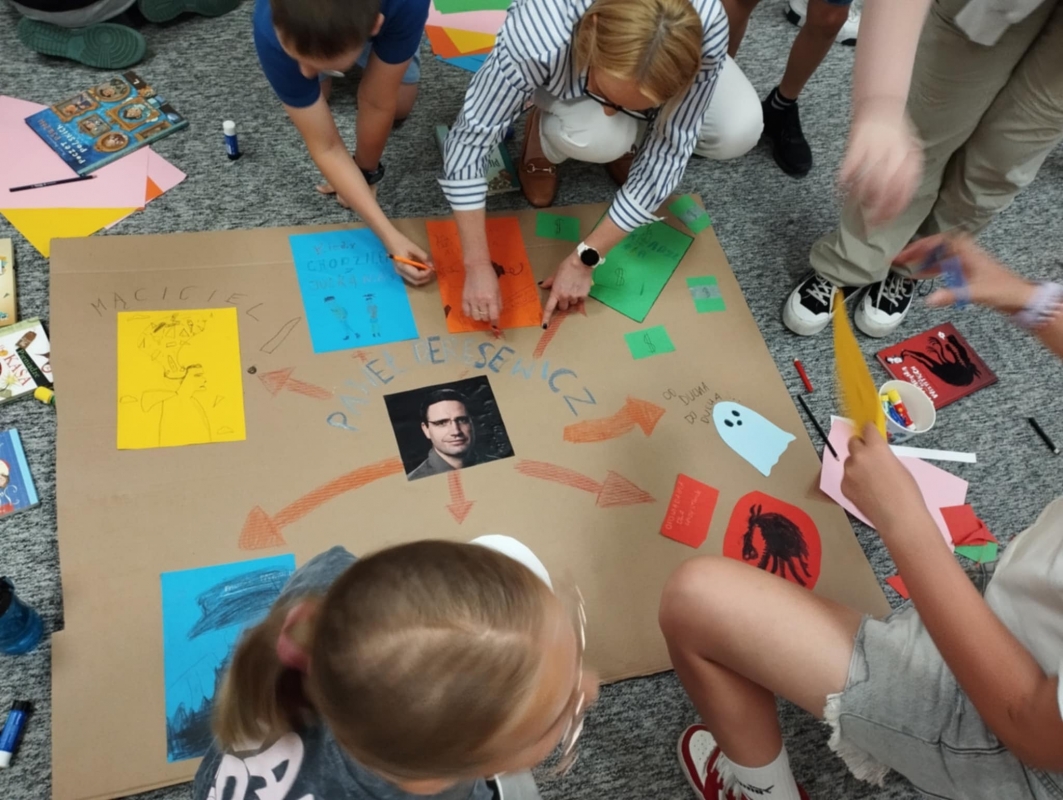 Spotkanie było doskonałym przykładem na to, że literatura może stać się punktem wyjścia do twórczych działań, rozmów i wspólnej pracy. Takie inicjatywy nie tylko rozwijają zainteresowania czytelnicze, ale także wzmacniają kompetencje społeczne i artystyczne uczniów, pokazując, że książka to przestrzeń pełna możliwości.