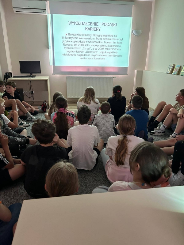 Spotkanie rozpoczęło się od prezentacji multimedialnej przygotowanej specjalnie na tę okazję. Uczniowie poznali najważniejsze książki autora, charakterystyczne motywy pojawiające się w jego twórczości oraz liczne ciekawostki z życia i dorobku literackiego Pawła Beręsewicza. Prezentacja spotkała się z dużym zainteresowaniem – uczniowie chętnie słuchali, zadawali pytania i dzielili się swoimi czytelniczymi doświadczeniami.