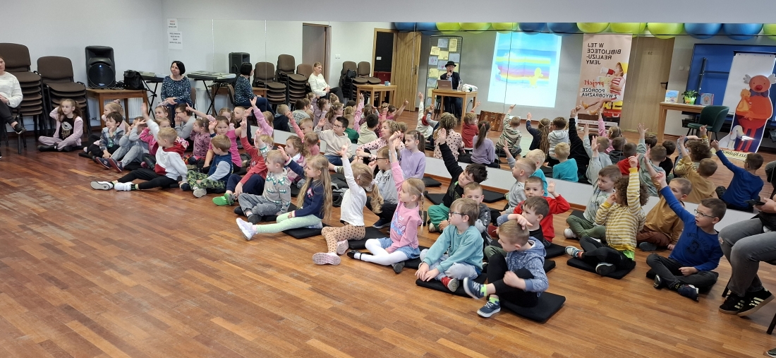 Naszymi gośćmi były dzieci z Przedszkola „Jarzębinka”, a ich przewodnikiem po świecie książek został jeden z najbardziej lubianych autorów literatury dla najmłodszych – Wojciech Widłak.