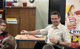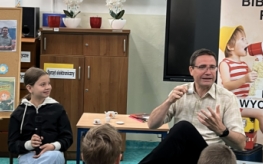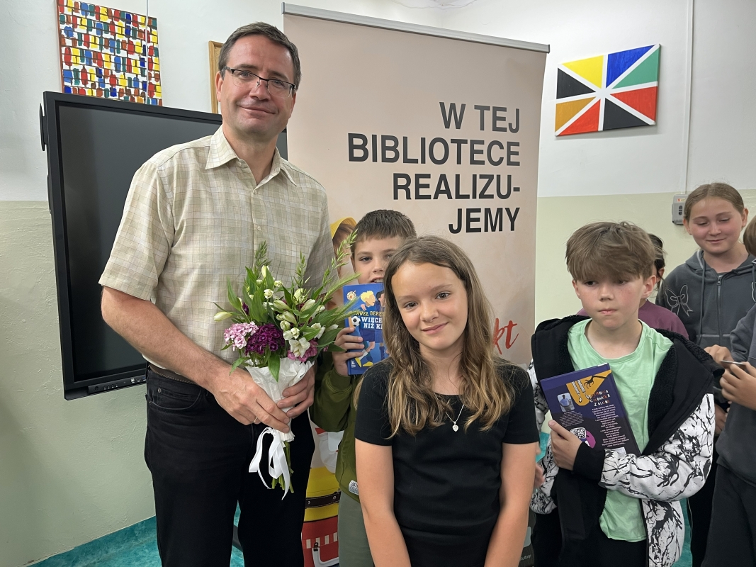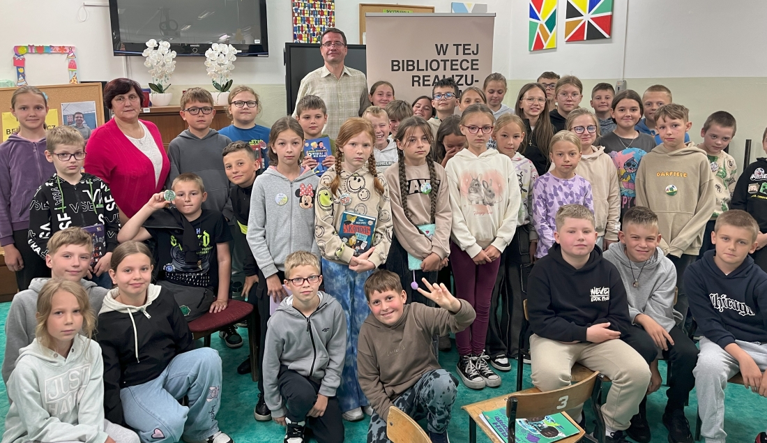 Autor z pasją opowiadał o swoich książkach i ich bohaterach, angażując młodych słuchaczy do rozmowy i zachęcając ich do zadawania pytań. Uczniowie z zapartym tchem słuchali opowieści, chętnie dzielili się swoimi spostrzeżeniami i ciekawością świata literatury.
