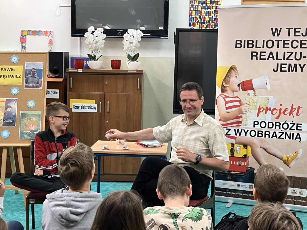 Nie lada atrakcją dla wybranych uczestników była również „poważna rozmowa o książkach” przy herbatce, która stała się okazją do bliższego poznania pisarza i jego pracy. Podczas spotkania uczniowie dowiedzieli się m.in., że zanim Paweł Beręsewicz został pisarzem, pracował jako nauczyciel języka angielskiego, leksykograf oraz tłumacz książek.