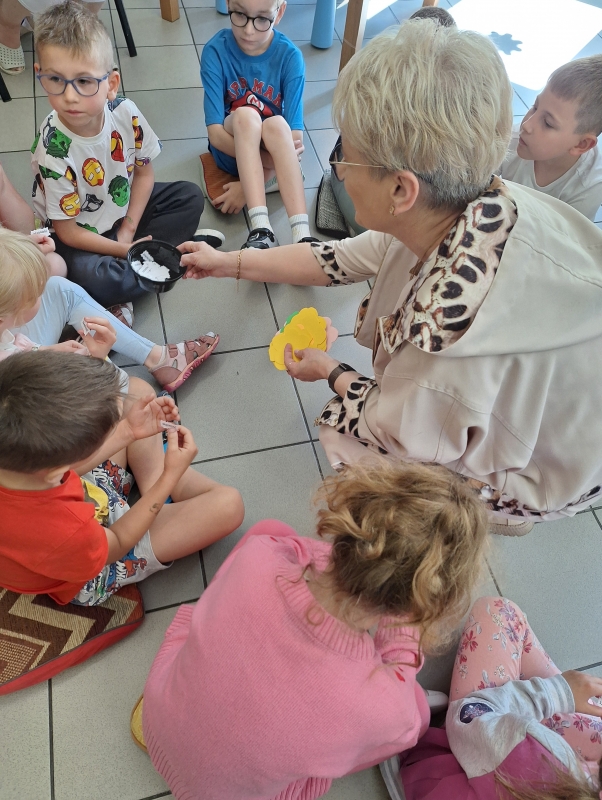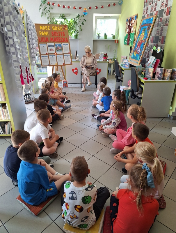 Na spotkanie przybyły 6-latki z Niepublicznego Przedszkola „Zaradni, Odważni, Oryginalni”, które z wielkim zainteresowaniem wysłuchały czytanej przez Panią Sołtys książki Elizy Piotrowskiej „Ciocia Jadzia w Transylwanii”. Wspólne czytanie było doskonałym wstępem do rozmowy o ważnych wartościach moralnych, pomagających budować dobre relacje międzyludzkie.