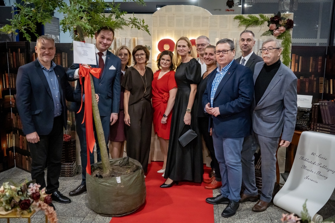 Na pamiątkę jubileuszu Gmina Jarocin przekazała bibliotece dąb. To symbol trwałości i odpowiedzialności za przyszłość – przypomnienie, że tak jak drzewo potrzebuje czasu, troski i dobrych warunków, tak instytucja kultury rozwija się dzięki systematycznej pracy i wspólnemu zaangażowaniu. Niech będzie znakiem kolejnych lat mądrej obecności biblioteki w życiu miasta i gminy.