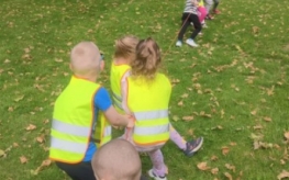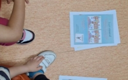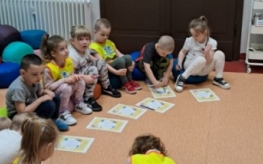 Następnie mali goście wyruszyli na biblioteczną wyprawę. W trakcie zajęć dzieci wyszukiwały różnice w przestrzeni bibliotecznej, rozwiązywały proste zadania i pokonywały przygotowane ścieżki, których celem było odnalezienie nieuszkodzonej książki. Zabawy miały formę ruchową i edukacyjną, dzięki czemu nauka przeplatała się z radością odkrywania.