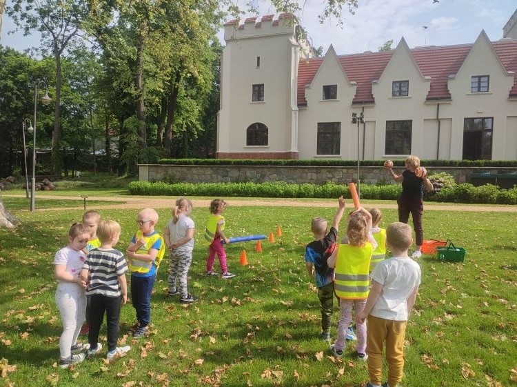 Na zakończenie spotkania na dzieci czekała dodatkowa atrakcja – zabawy ruchowe na świeżym powietrzu, przygotowane na terenie za pałacem. Był to idealny moment na rozładowanie energii i wspólną integrację w wyjątkowym otoczeniu Pałacu Radolińskich.