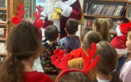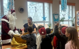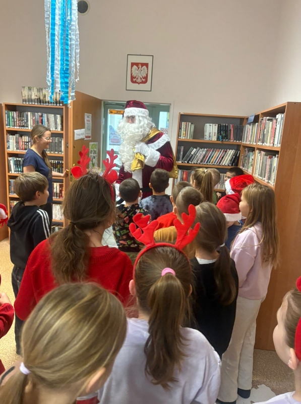 A skoro w tytule pojawił się Mikołaj – nie mogło go zabraknąć również w naszej bibliotece. Święty Mikołaj odwiedził dzieci, obejrzał wszystkie wykonane prace, pochwalił kreatywność uczestników i nagrodził ich słodkimi upominkami. Po krótkiej wizycie ruszył dalej w swoją drogę, by odwiedzić także przedszkolaki i inne klasy.