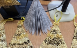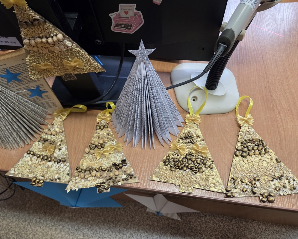 Podczas warsztatów dzieci z ogromnym zaangażowaniem tworzyły własne, niepowtarzalne choinki. Do ich wykonania wykorzystano różnorodne materiały plastyczne, takie jak ziarna kawy, ryż, kasza, makaron oraz inne naturalne dodatki. Dzięki pomysłowości młodych uczestników powstały piękne, pachnące dekoracje – małe dzieła sztuki, które zachwycały swoją oryginalnością i starannością wykonania.