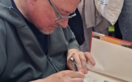 Od pierwszych chwil spotkania w sali panowała radosna, swobodna atmosfera. Marcin Pałasz z charakterystycznym dla siebie humorem opowiadał o swojej drodze do pisarstwa, podkreślając, że wcale nie planował zostać autorem książek. Zanim zaczął pisać, pracował w branży reklamowej. Jak sam żartował, jego pomysły były tak zabawne, że trudno było traktować je całkiem serio – i być może zostałby w reklamie na dłużej, gdyby nie pewne rodzinne wydarzenie.