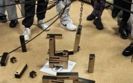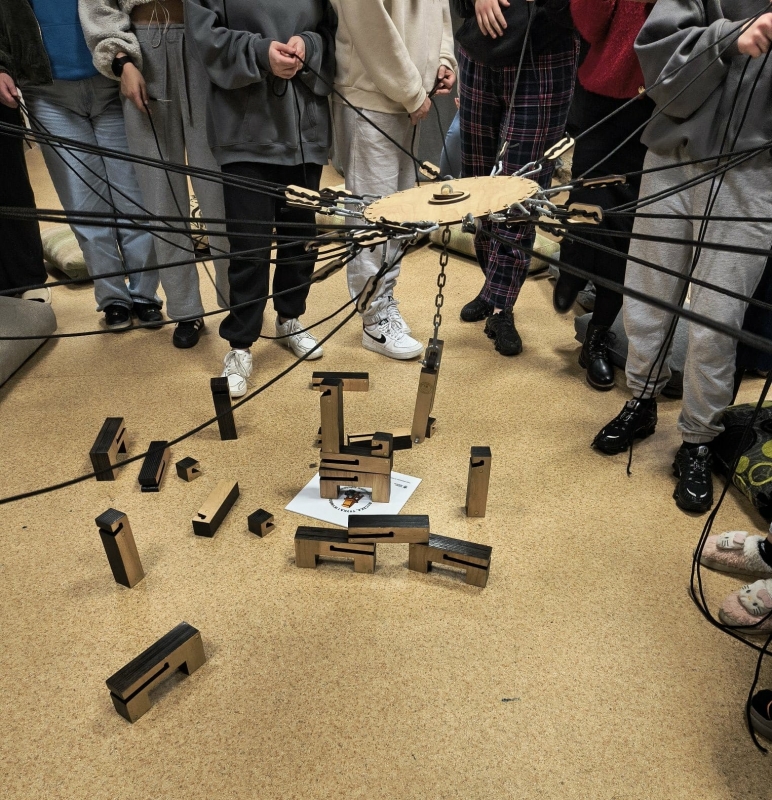 Kolejnym zadaniem było wspólne budowanie makiety Cerekwicy z drewnianych klocków. Dziewczyny z zaangażowaniem tworzyły własną wizję miejscowości, a przy okazji rozmawialiśmy o lokalnych miejscach i historii regionu.