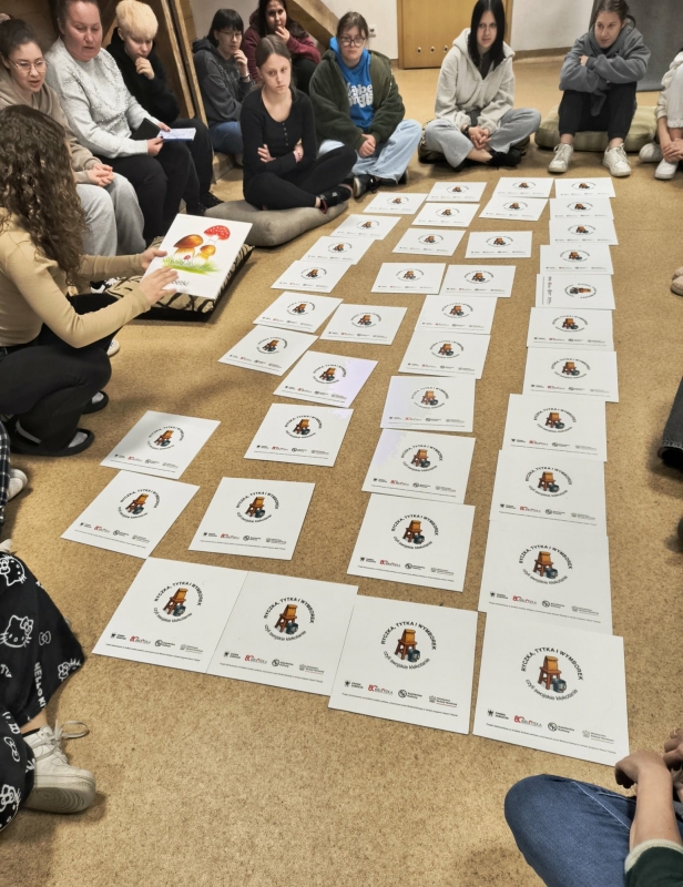Zajęcia rozpoczęły się od wspólnego czytania legendy „O powstaniu Cerekwicy i cerekwickiego kościoła”. Nie było to jednak zwykłe słuchanie – uczestniczki musiały zachować czujność. Gdy w tekście pojawiało się wcześniej ustalone słowo, wszyscy wykonywali… przysiad! Ta prosta zabawa wprowadziła dużo śmiechu i energii, a jednocześnie pozwoliła uważniej wsłuchać się w opowieść o początkach miejscowości.