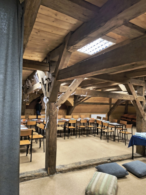Spotkanie odbyło się w niezwykle przyjemnej atmosferze. Dziewczyny przyjęły nas bardzo serdecznie na klimatycznym poddaszu ośrodka, gdzie na stołach czekały domowe pyszności – pierniki i ciasto. Był to czas rozmów, wspólnej zabawy i budowania relacji, które pokazują, że biblioteka może być obecna także poza swoimi murami.