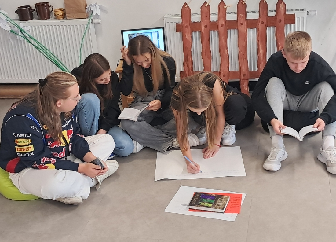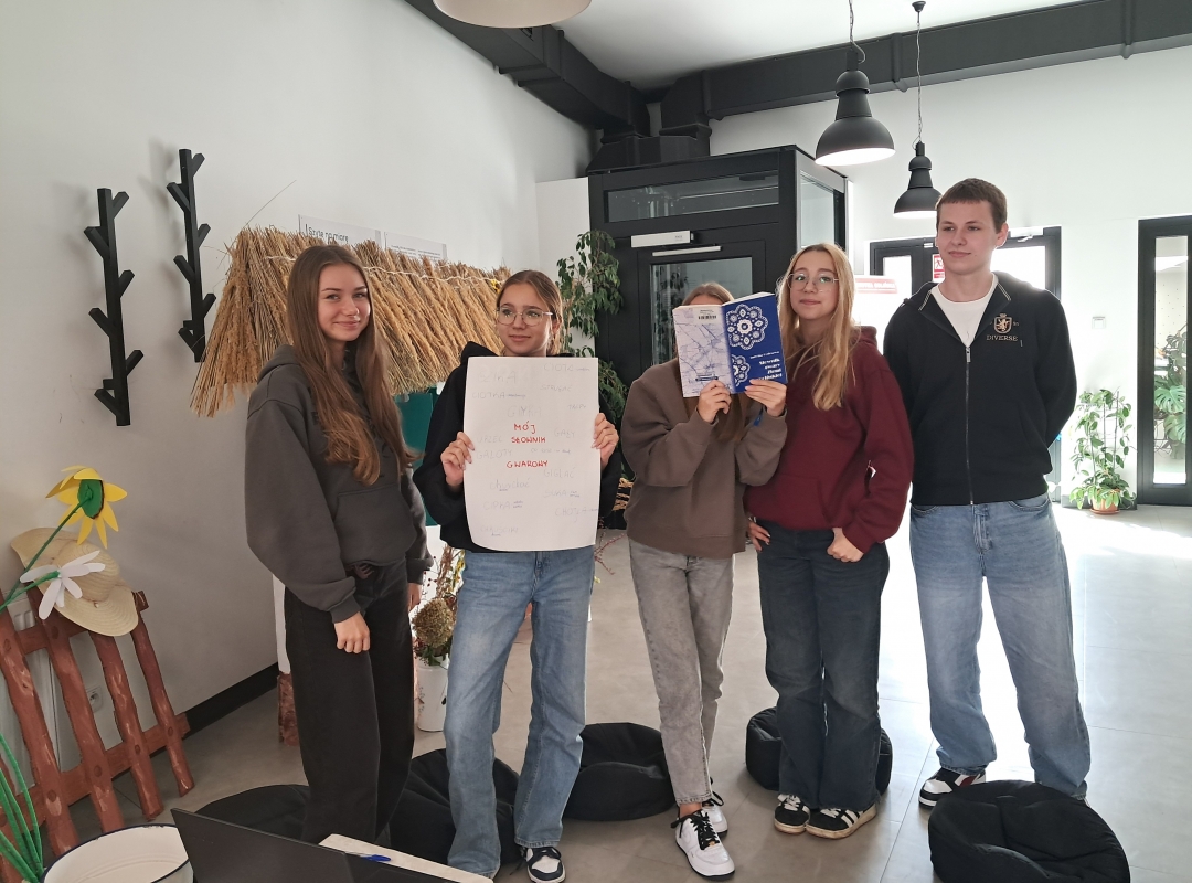 Dużą uwagę poświęciliśmy gwaryzacji języka, czyli obecności gwary w literaturze i muzyce. Na przykładzie książek „Jadwisia” Jadwigi Podeszwy oraz publikacji Stanisława Grzesiuka uczniowie poznawali różnice między dialektem, gwarą, językiem urzędowym a żargonem. Dzięki gwarowej krzyżówce i nagraniom mowy mogli usłyszeć, jak brzmią poszczególne gwary i lepiej zrozumieć lokalną różnorodność językową.