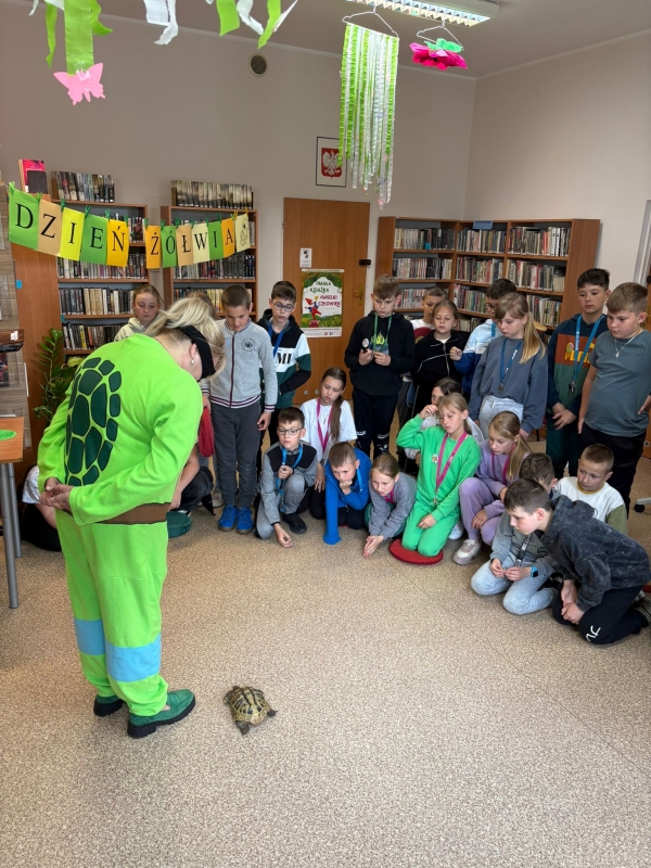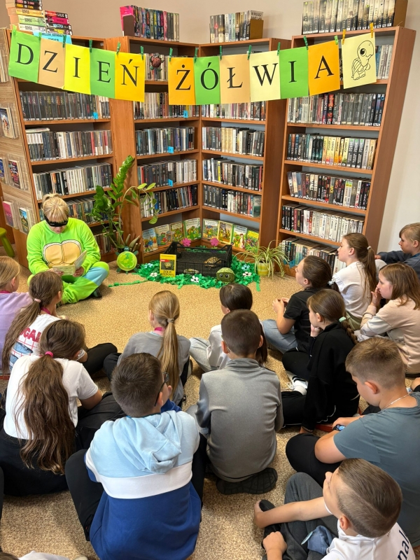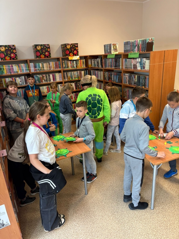 Dzień Żółwia w bibliotece upłynął w atmosferze śmiechu, ciekawości i dobrej zabawy. To kolejne wydarzenie, które pokazuje, że biblioteka to miejsce, gdzie spotykają się książki, edukacja i magia dziecięcej wyobraźni.