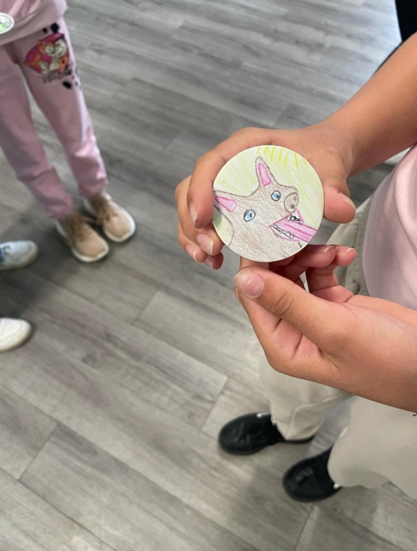 Dzieci rozpoczęły spotkanie od krótkiego wprowadzenia w świat bohaterów ulubionych opowieści – w centrum uwagi znalazł się przede wszystkim Elf, pies pełen energii i niezwykłych przygód. Uczestnicy rozmawiali o swoich ulubionych postaciach i wspólnie zastanawiali się, które sceny z książek najlepiej oddać w małym, okrągłym formacie przypinki.
