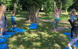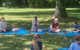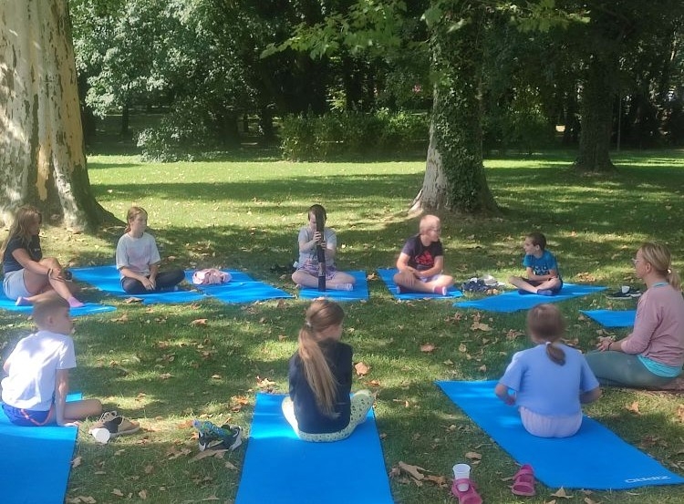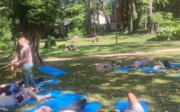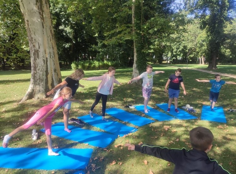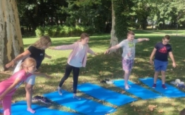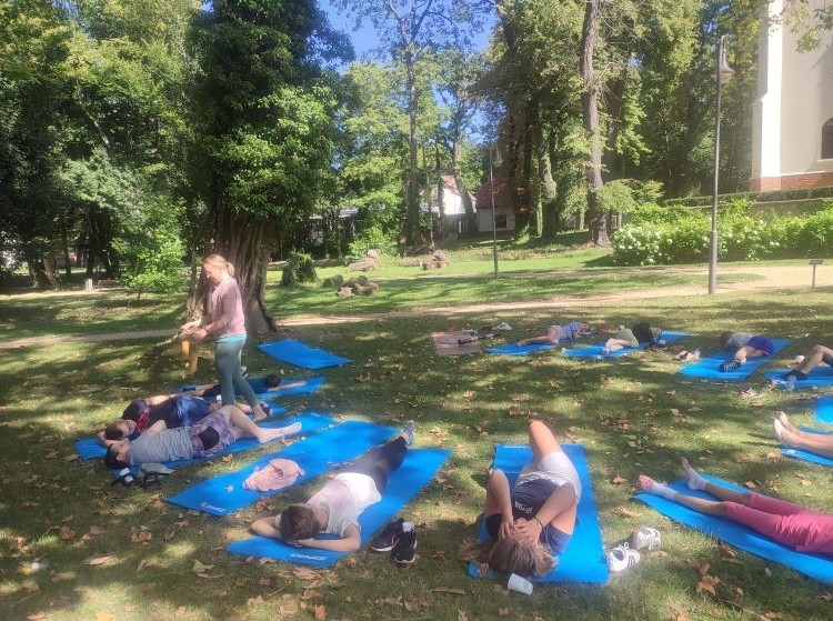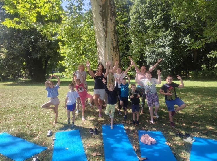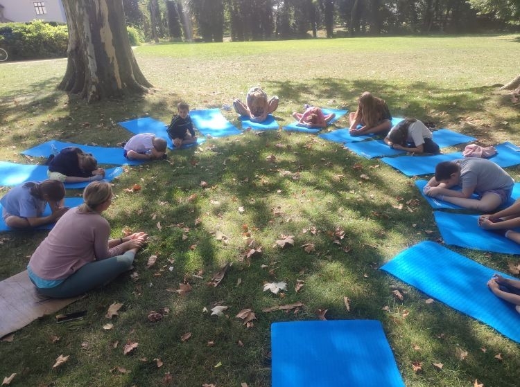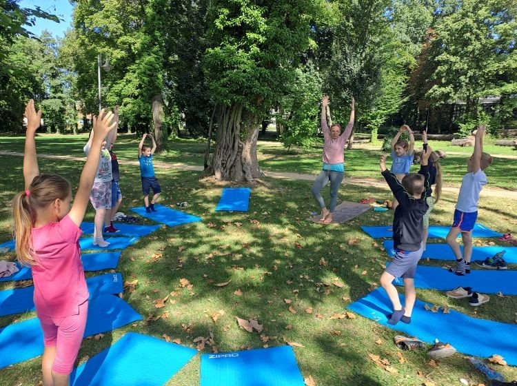 Kolejnego dnia odbyły się warsztaty jogi dla dzieci, które poprowadziła pani Katarzyna Szymańska. Na początku uczestnicy dowiedzieli się, skąd wywodzi się joga i jakie korzyści przynosi dla zdrowia i samopoczucia. Następnie dzieci poznały podstawowe ćwiczenia, które pomagają się wyciszyć, zrelaksować i zadbać o ciało oraz spokojną głowę.