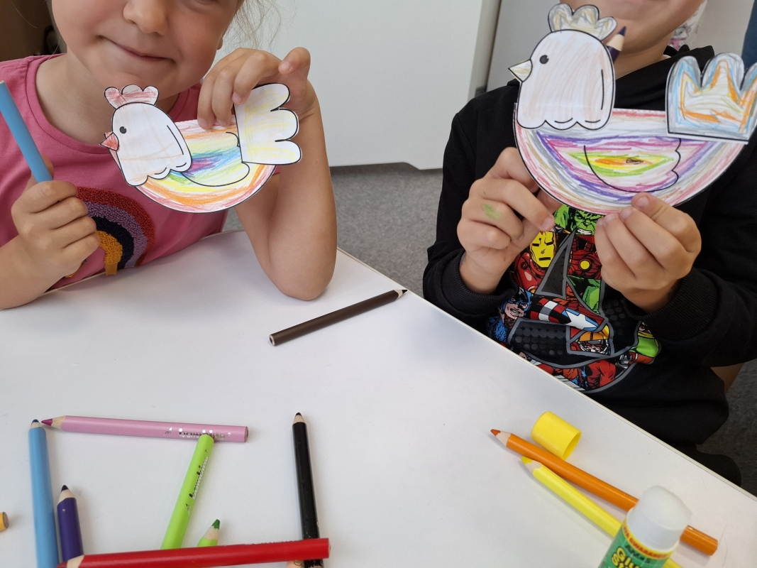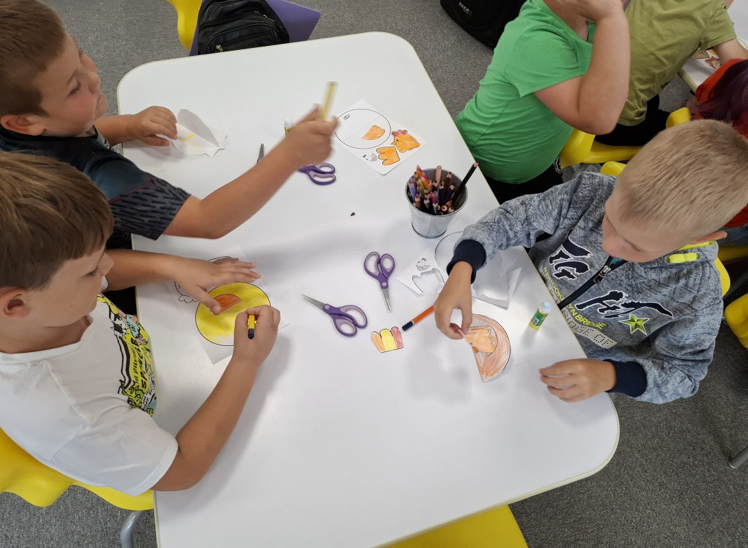 Podczas dwóch pierwszych zajęć mali uczestnicy wysłuchali bajeczek o wyprawie do zoo i na wieś. Po lekturze przyszedł czas na zabawę – dzieci wykonały własnoręcznie papierowe zwierzątka: lwa i kurkę.