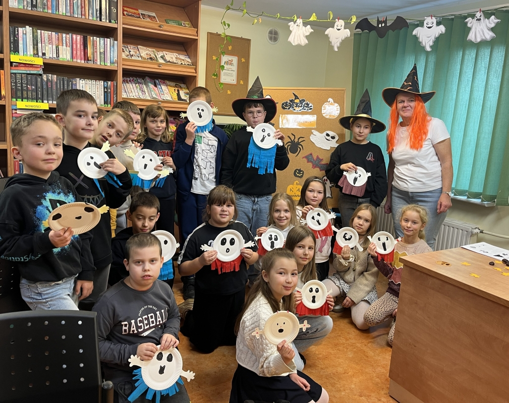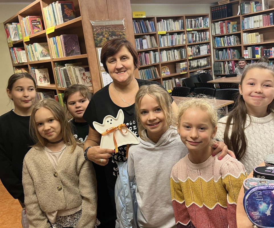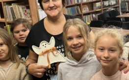 Spotkanie upłynęło w radosnej, twórczej atmosferze, łącząc czytelnictwo z dobrą zabawą. Takie wizyty pokazują, że biblioteka to nie tylko miejsce wypożyczania książek, ale także przestrzeń inspirujących spotkań i wspólnego odkrywania świata – nawet tego z nutą „strasznego” klimatu.