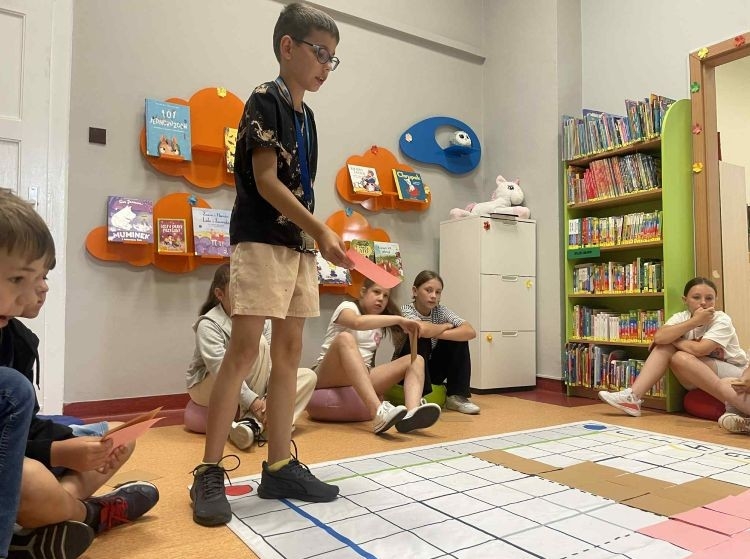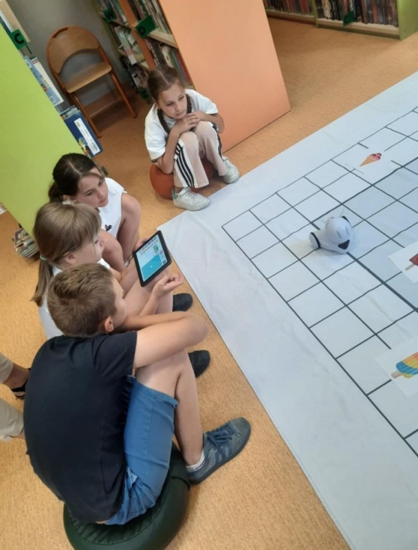 Podczas zajęć mali uczestnicy wysłuchali wiersza „Lody”, a następnie opowiadali o swoich ulubionych smakach. Korzystając z maty do kodowania i modeli lodów, dzieci układały sekwencje trasy Robota Photona, wybierając swoje ulubione smaki jako kolejne punkty w programie.