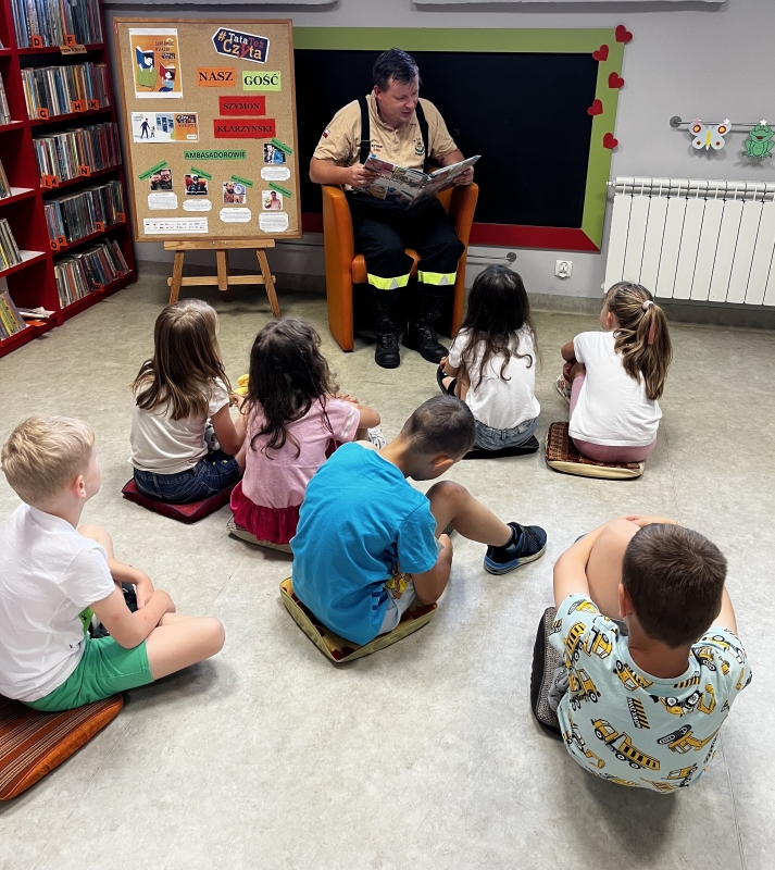 Strażak w czytelniczej akcji