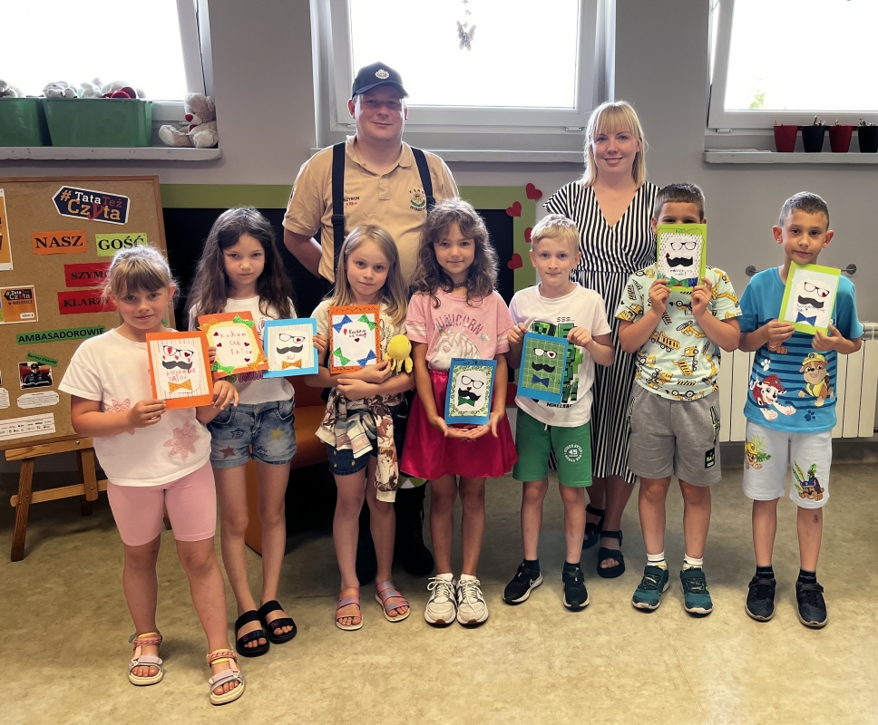 Następnie dzieci wykonały laurki z okazji Dnia Ojca, wkładając w nie wiele serca i kreatywności. Spotkanie zakończyło się uroczystym wręczeniem podziękowań dla naszego gościa oraz słodkim upominkiem dla dzieci. Nie zabrakło także pamiątkowego zdjęcia, które będzie miłym wspomnieniem tego wyjątkowego dnia.