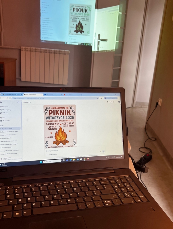 W szkoleniu wzięli udział członkowie Stowarzyszenia na Rzecz Witaszyc, zainteresowani poszerzeniem swojej wiedzy oraz poznaniem praktycznych zastosowań sztucznej inteligencji w codziennej pracy społecznej i promocyjnej.