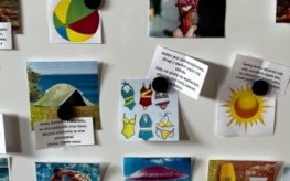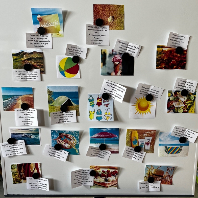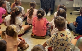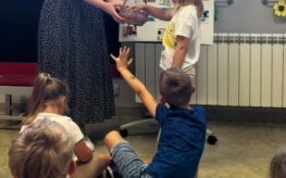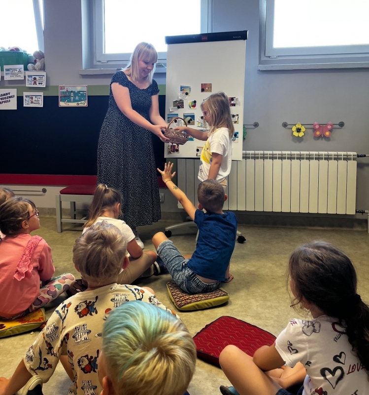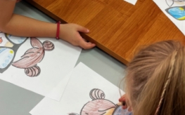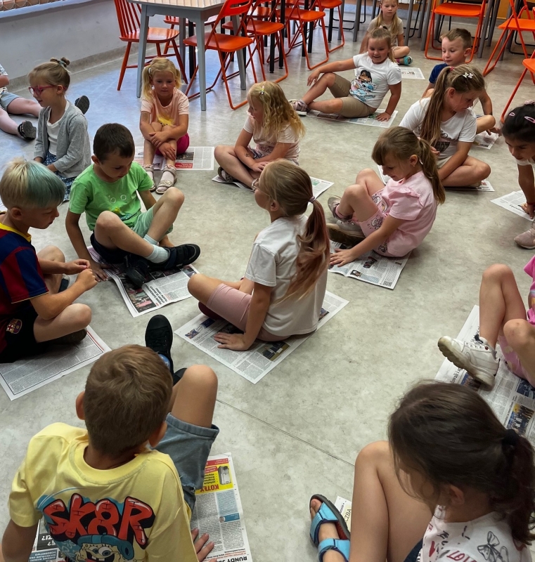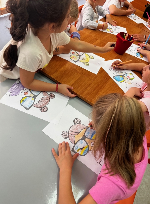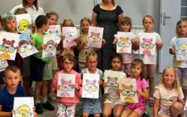Dzieci wysłuchały bajki „Zuzia na plaży” i wzięły udział w rozmowie na temat zasad bezpiecznej kąpieli. Opowiadały także o swoich wakacyjnych przygodach i świetnie radziły sobie z odgadywaniem zagadek. Na zakończenie spotkania przedszkolaki rysowały i kolorowały swoje wakacyjne marzenia.