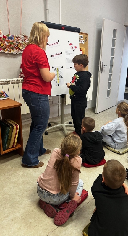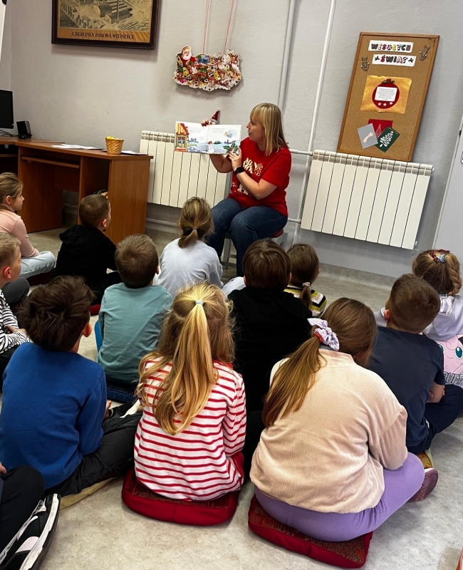Świąteczne spotkanie z książką i tradycją w filii w WitaszycachW filii w Witaszycach zapanowała prawdziwie świąteczna atmosfera. W wyjątkowym nastroju przygotowań do Bożego Narodzenia mieliśmy przyjemność gościć uczniów klasy I a wraz z wychowawczynią.